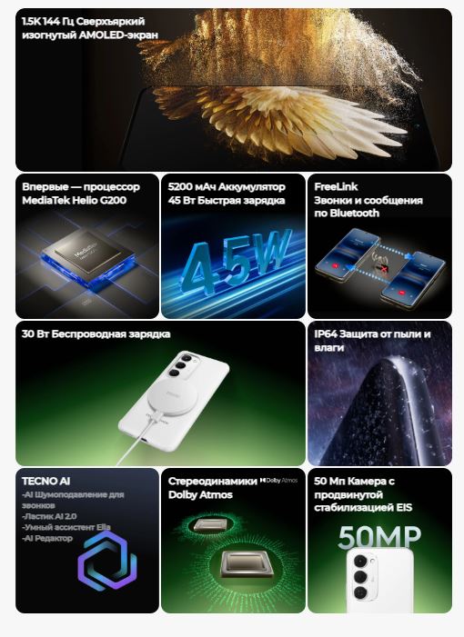 Характеристики Смартфон Tecno Spark 40 Pro+ 8/256GB Titanium/Титановый